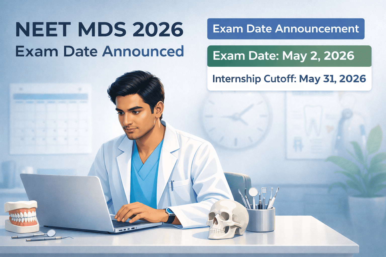 NEET MDS 2026 Exam Date Announced (Official) NEET MDS 2026 exam date has been officially announced by NBEMS. As per the tentative schedule released by the National Board of Examinations in Medical Sciences, NBEMS will conduct the NEET MDS 2026 exam on May 2, 2026 (Saturday) in computer-based mode. Additionally, NBEMS has confirmed May 31, 2026 as the internship completion cutoff date. Therefore, candidates must complete their 12-month compulsory rotatory internship on or before this date to remain eligible for the exam. NEET MDS continues [...]