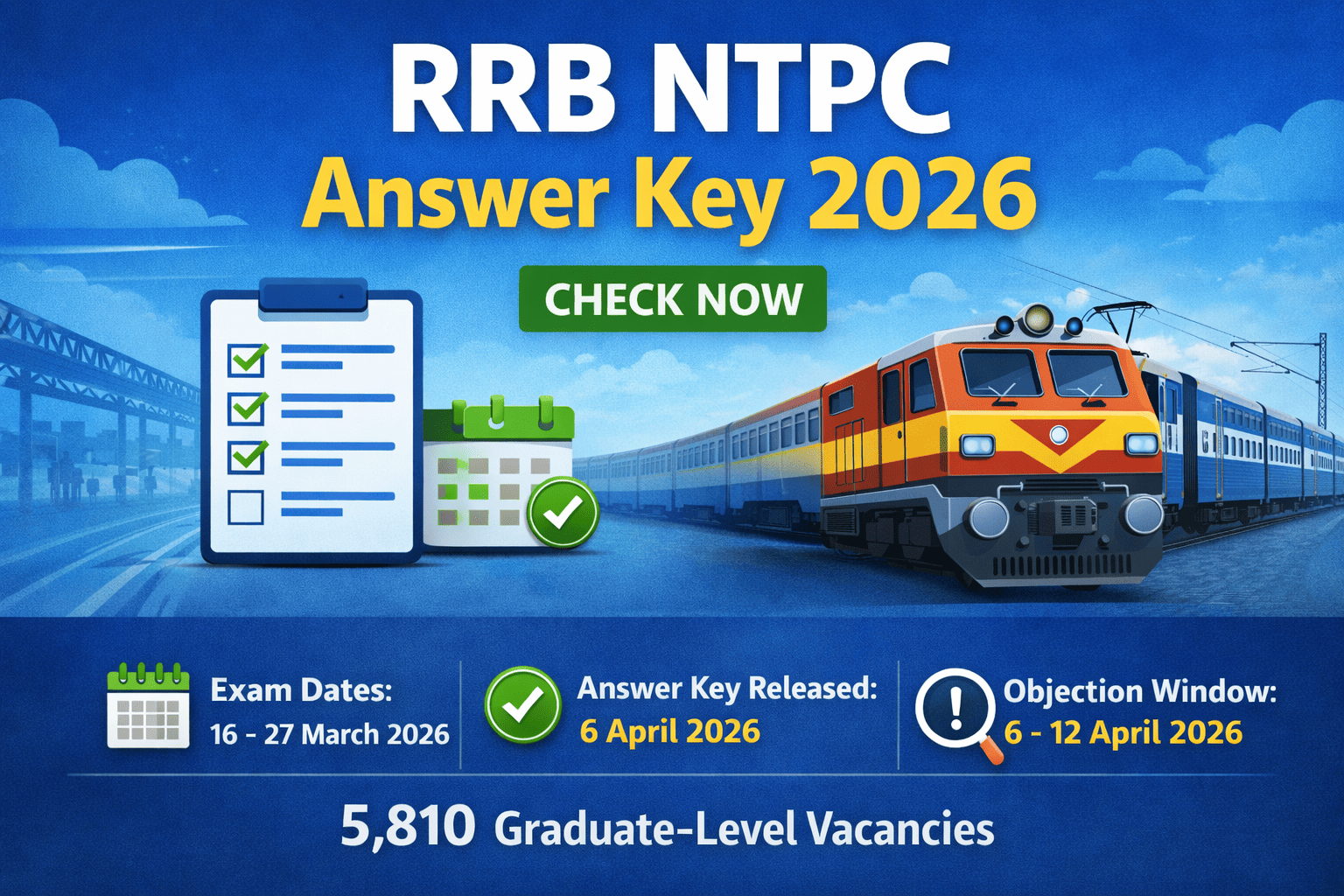 RRB NTPC Answer Key 2026 Out: CBT 1 Response Sheet, Objection Link Last Updated: 7 April 2026 The RRB NTPC Answer Key 2026 for Graduate Level CBT 1 (CEN 06/2025) is now out. Candidates can log in to check their tentative answer key, response sheet, and question paper through the official answer-key portal. Current reports say the link went live on 6 April 2026, and the objection window is open until 12 April 2026, 11:55 pm. If you appeared in the CBT 1 exam, you [...]