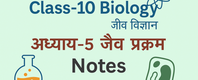 कक्षा 10 विज्ञान: अध्याय 5 – जैव प्रक्रम – महत्वपूर्ण नोट्स एवं प्रश्न-उत्तर जैव प्रक्रम परिचय— 1.जैव प्रक्रम — ➠सभी प्रक्रम जो सम्मिलित रूप से अनुरक्षण का कार्य करते हैं। a. पोषण: ऊर्जा स्त्रोत को भोजन द्वारा शरीर के अंदर लेने का प्रक्रम। b. श्वसन: शरीर के बाहर से ऑक्सीजन ग्रहण करना व कोशिकीय आवश्यकता के अनुसार खाद्य स्त्रोत के विघटन में उसका उपयोग। c. वहन: भोजन ग्रहण करने, गैसों का आदान-प्रदान करने व वर्ज्य पदार्थों के निष्कासन के लिए वहन तंत्र की आवश्यकता। d. [...]