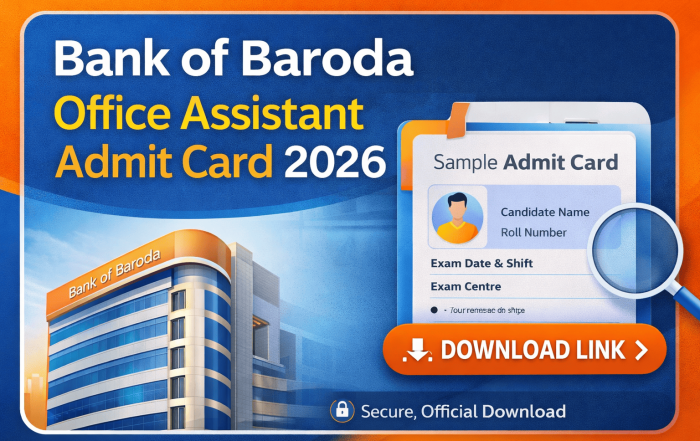 ๐ข Bank of Baroda Office Assistant Admit Card 2026 Download Link The Bank of Baroda Office Assistant Admit Card 2026 was released on 15 February 2026 ๐๏ธ. Now candidates can download the BOB Office Assistant [...]