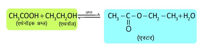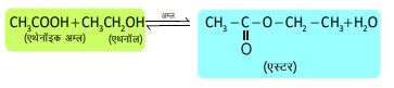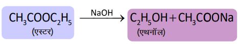 ➠ क्षार की उपस्थिति में एस्टर पुनः ऐल्कोहॉल व कार्बोक्सिलिक अम्ल का सोडियम लवण बनाता है जिसे साबुनीकरण कहते हैं।