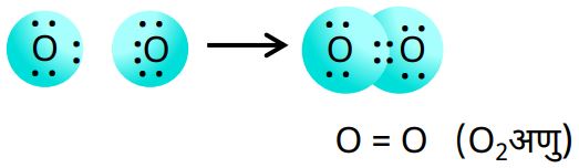 - ➠अतः कार्बन अपने अन्य परमाणुओं अथवा अन्य तत्वों के परमाणुओं के साथ इलेक्ट्रॉन की साझेदारी कर अणुओं का निर्माण करता है तथा उत्कृष्ट गैस विन्यास प्राप्त करता है।