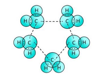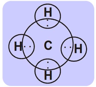➠ उत्कृष्ट गैस विन्यास प्राप्त करने के लिए कार्बन का एक परमाणु हाइड्रोजन के चार परमाणुओं से इलेक्ट्रॉनों का साझा करता है।