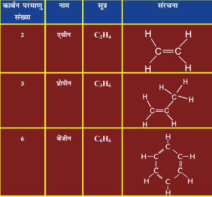 - ➠इनमें एक आबंध द्विबंध होता है, जिससे कार्बन की संयोजकता पूर्ण हो जाती है।