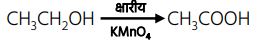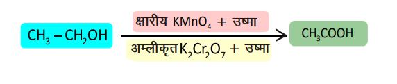 उदाहरण: अम्लीय K₂Cr₂O₇ या क्षारीय KMnO₄ एक ऑक्सीकारक पदार्थ है, जो एथेनॉल को एथेनॉइक अम्ल में परिवर्तित (ऑक्सीकृत) करता है।