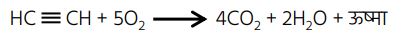 6. ⚈ एथाइन का मिश्रण ऑक्सीजन के साथ जलाने पर यह अत्यधिक ताप पर नीली ज्वाला के साथ जलती है, जो वेल्डिंग के लिए उपयुक्त है और यह पूर्ण दहन की स्थिति होती है।