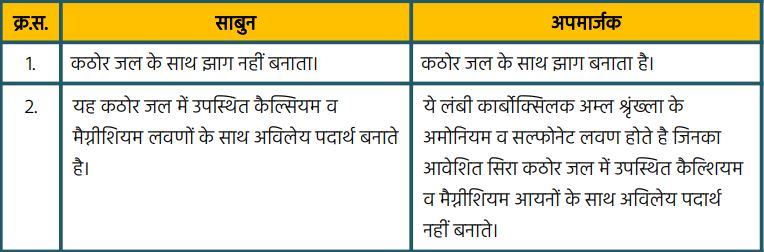 ➠ साबुन के अणु लंबी श्रृंखला वाले कार्बोक्सिलिक अम्लों के सोडियम एवं पोटेशियम लवण होते हैं।
