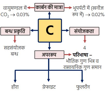 ➠ कार्बन की संयोजकता 4 है क्योंकि इसमें 4 संयोजी इलेक्ट्रॉन होते हैं।