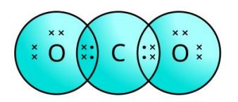 4. CO₂ सूत्र वाले कार्बन डाइऑक्साइड की इलेक्ट्रॉन बिंदु संरचना –