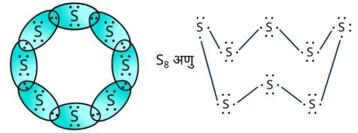 5. सल्फर के आठ परमाणुओं से बने सल्फ़र के अणु की इलेक्ट्रॉन बिंदु संरचना क्या होगी?