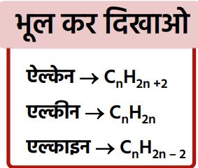 ➠ संतृप्त हाइड्रोकार्बन ऐल्केन कहलाते हैं। “ऐल्केन” का सामान्य सूत्र CₙH₂ₙ₊₂ होता है।