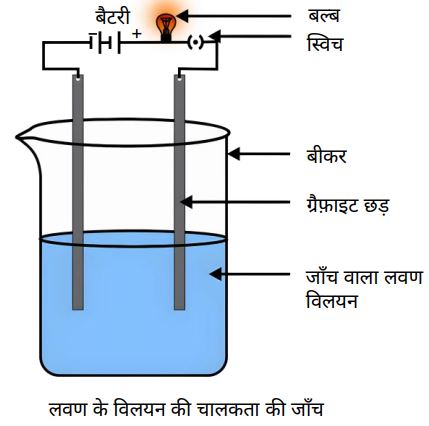 धातु का लवण विलयन अपघटन के लिए इलेक्ट्रोलाइट के रूप में लिया जाता है।