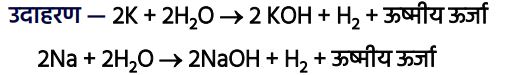 पोटैशियम व सोडियम अत्यधिक सक्रिय होने के कारण ठण्डे जल से तीव्रता से अभिक्रिया कर ऊष्मा उत्पन्न करते हैं। अतः ये अभिक्रियाएँ ऊष्माक्षेपी होती हैं।