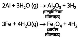 ➢ एल्युमिनियम, आयरन, जिंक आदि केवल गरम जल से अभिक्रिया करते हैं और तब भाप से क्रिया कर धातु ऑक्साइड व हाइड्रोजन प्रदान करते हैं।
