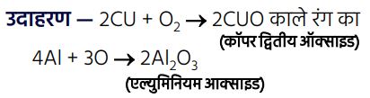 धातु + ऑक्सीजन → धातु ऑक्साइड (क्षारीय प्रकृति के)\