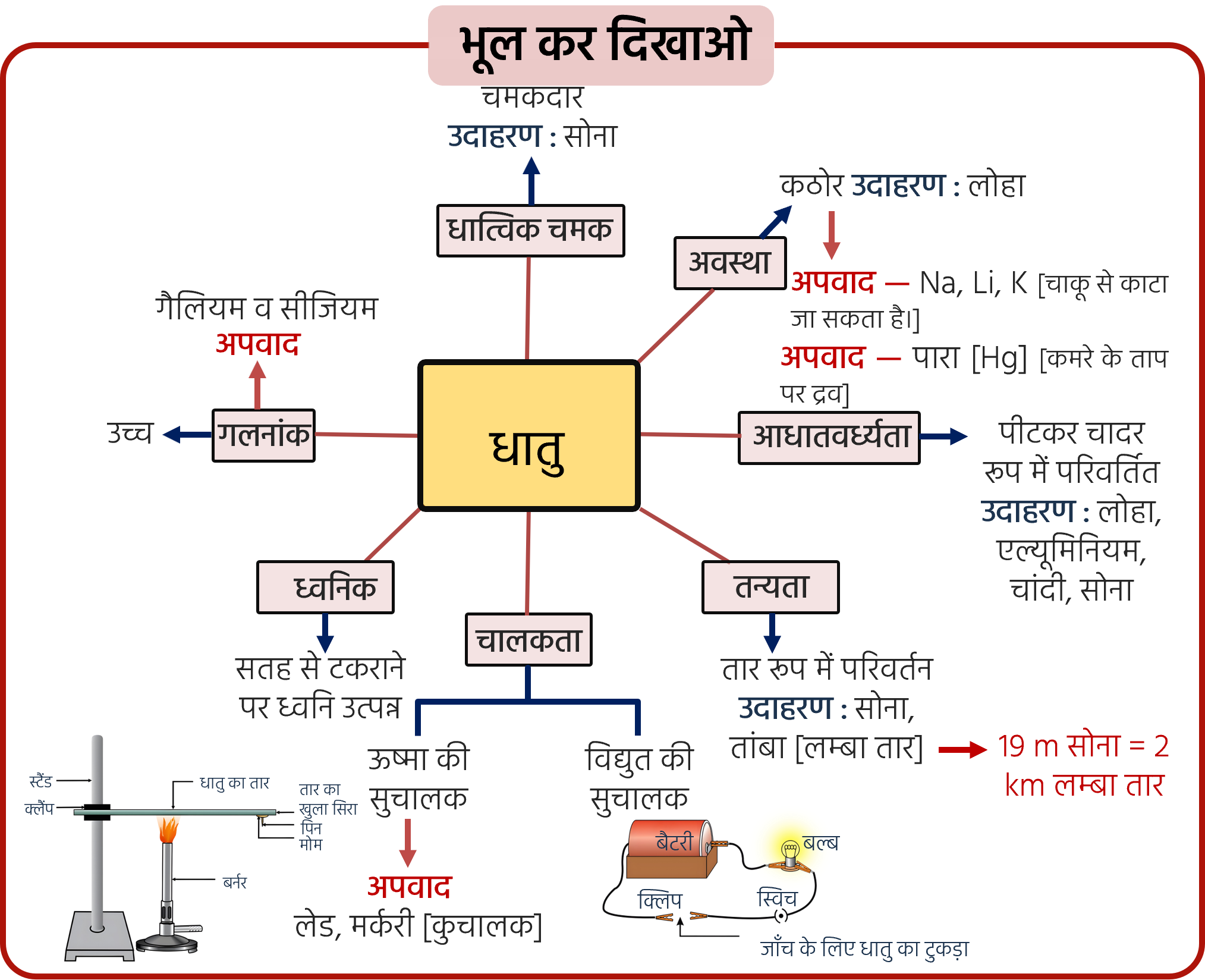 9. दो या दो से अधिक धातुओं के समांगी मिश्रण को मिश्रधातु कहते हैं।