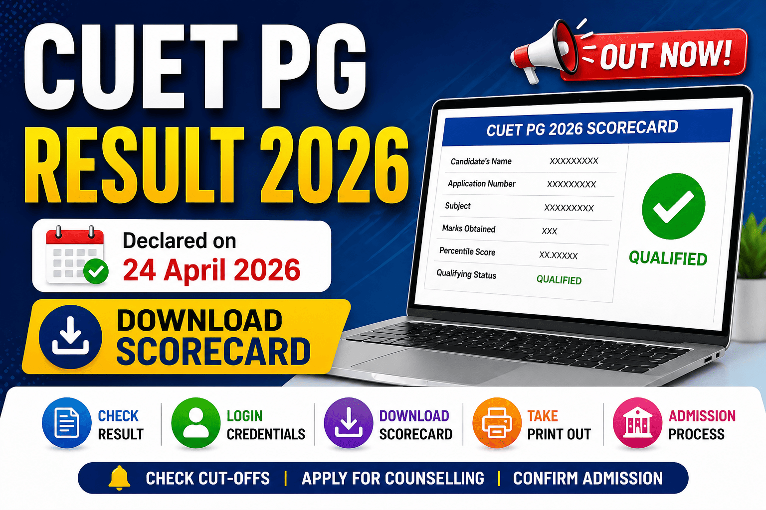 CUET PG Result 2026 Out: Download Scorecard CUET PG Result 2026 Released 📢 The postgraduate entrance exam result has now been officially announced, bringing an important update for candidates waiting for admission. The National Testing Agency (NTA) declared the result on 24 April 2026. Candidates who appeared for the exam can now download their CUET PG scorecard from the official portal. Students should always check updates from the official CUET PG website and the NTA portal to avoid incorrect information. Official Source Link Official CUET [...]