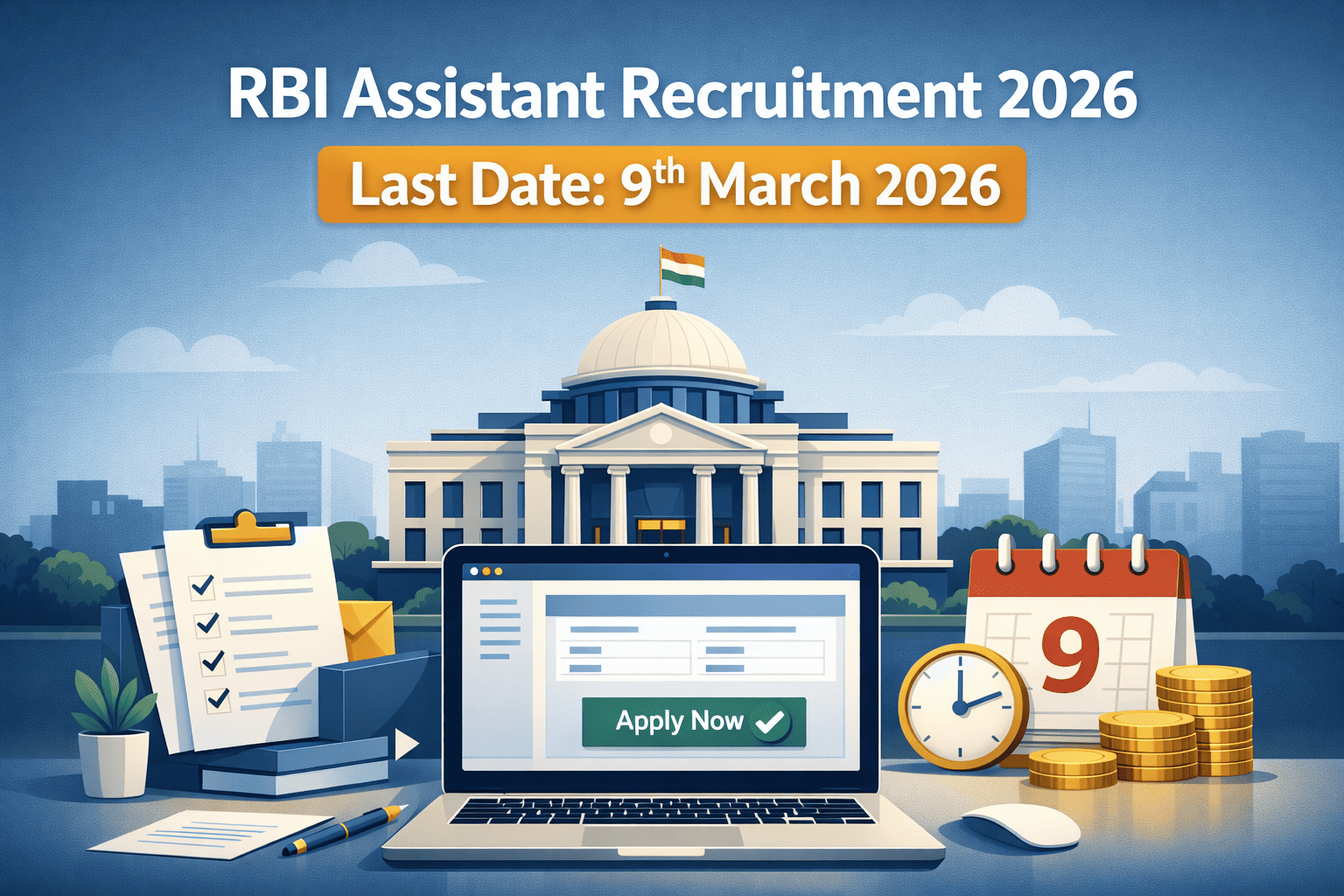 RBI Assistant Apply Online 2026 Last Date is Today The RBI Assistant Apply Online 2026 process is closing today, making this the final chance for eligible candidates to complete their registration. The Reserve Bank of India has invited applications for 650 Assistant posts, and candidates who have not yet submitted their forms should do so without delay. 📌 As the deadline is ending today, applicants should avoid waiting until the final hours because heavy traffic on the website can lead to payment failures or submission [...]